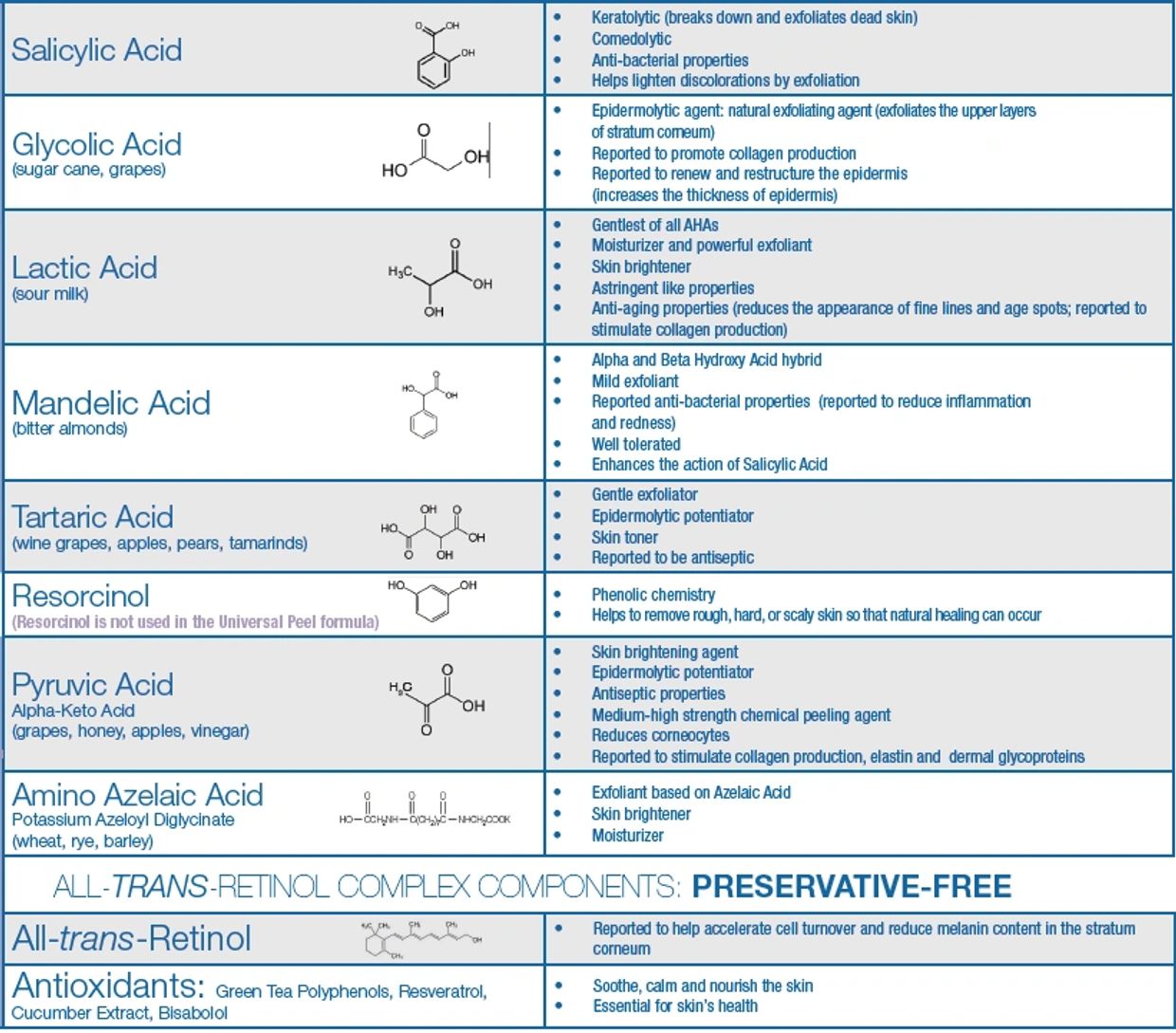 MD Chemical Peels are medical-grade chemical peels featuring layered-technology, integrated with All-trans-Retinol Complex, proprietary acid blend and antioxidants specially developed to promote healthy skin and improve the appearance of:
